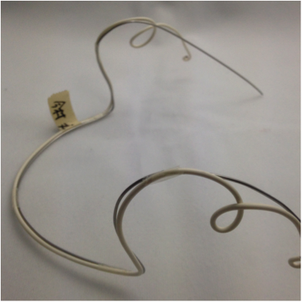 ステンレスバネ線をニッパーで50cmに切り、工程2で型取りしたデザインワイヤーに合わせて曲げて形を作って行きます。この時も、デザインワイヤーに力を加えて変形させないように注意して下さい。