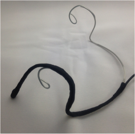 <①曲がる針金を用いた、両耳にかけるタイプのヘッドセットの作り方>